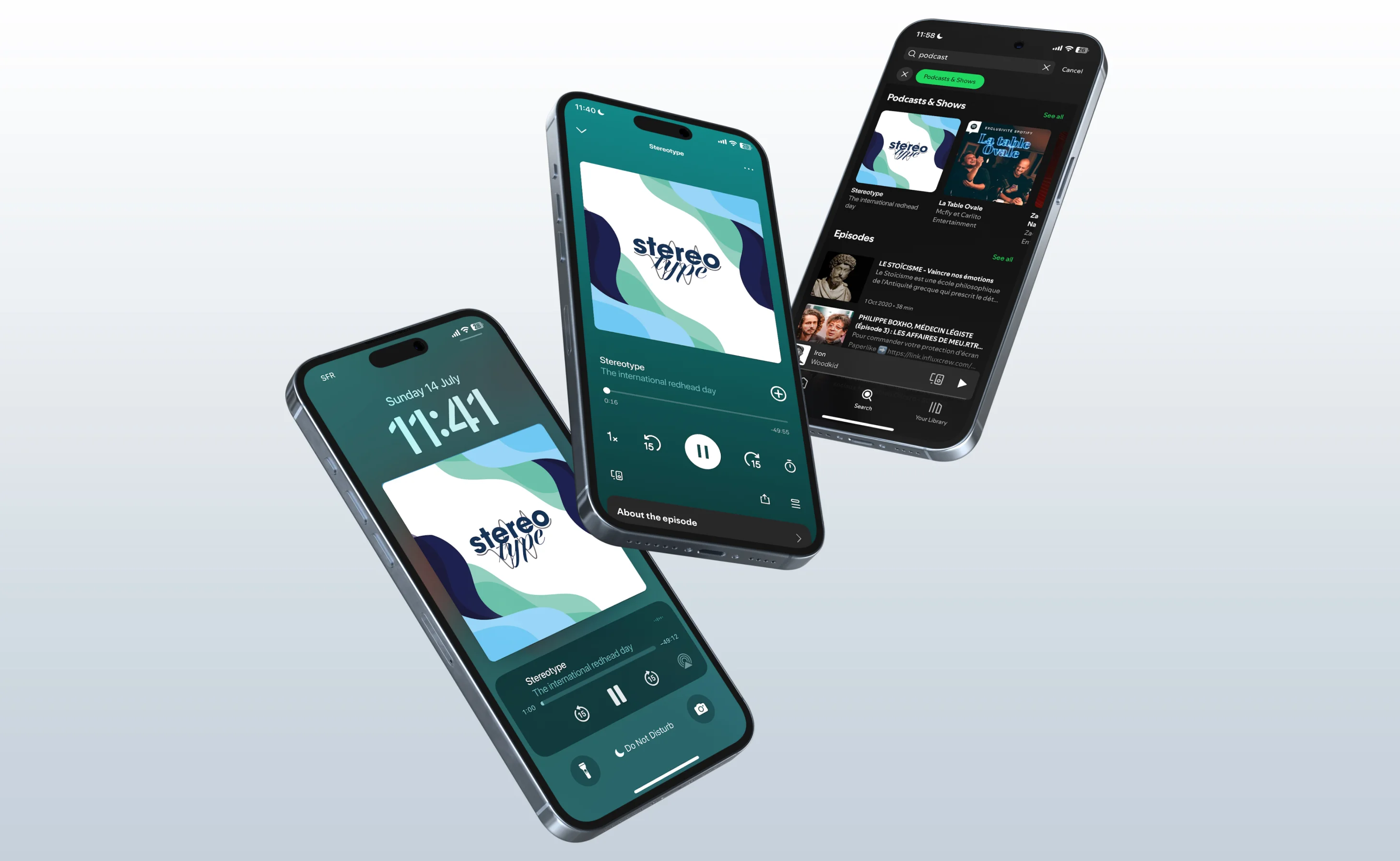 Réalisation d'un logo d'inspiration des ondes radio ainsi que d'une identité visuelle forte mais apaisante pour marquer l'identité visuelle du podcast et de l'événement, qui traitent de sujets lourds mais importants.