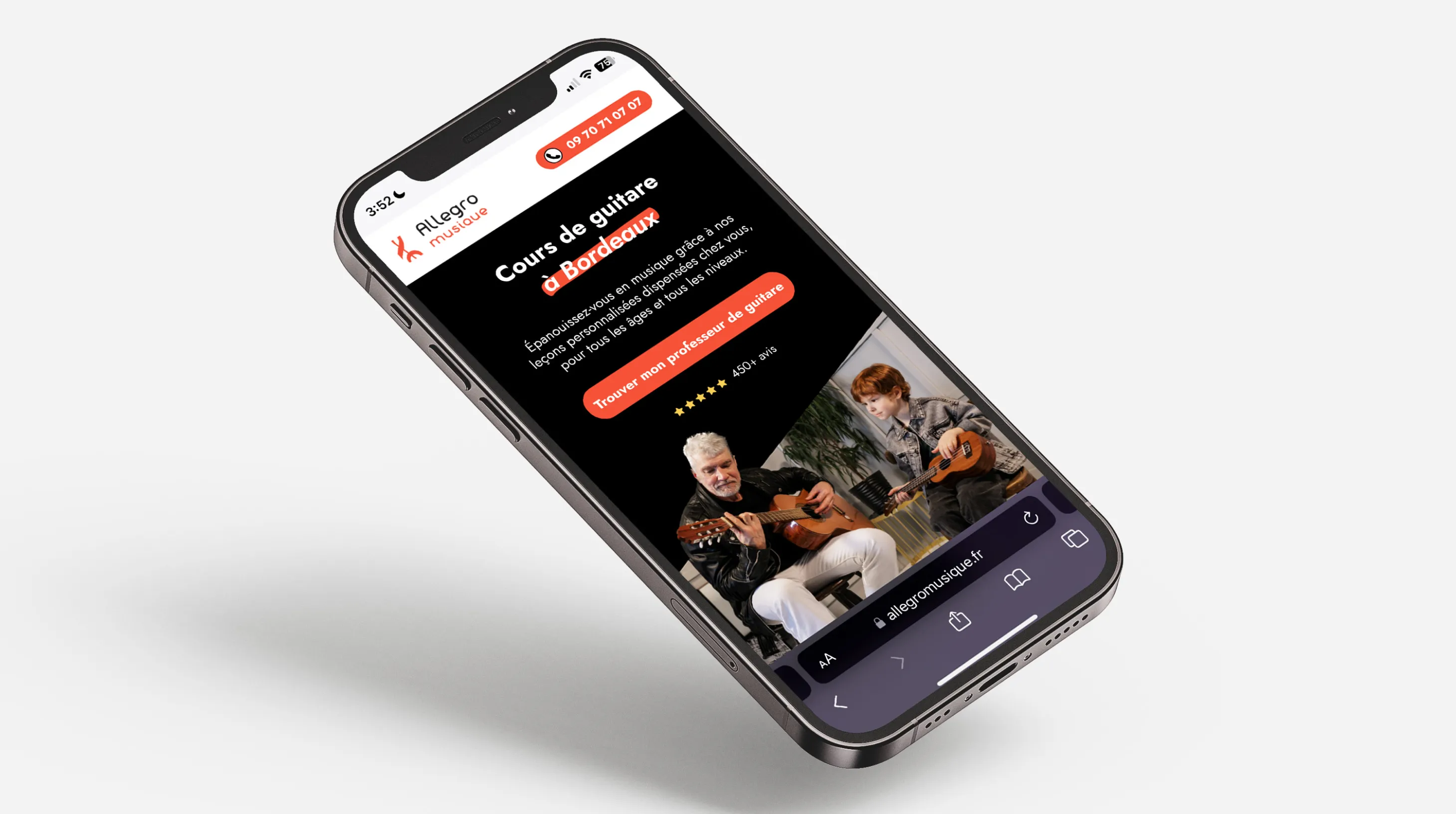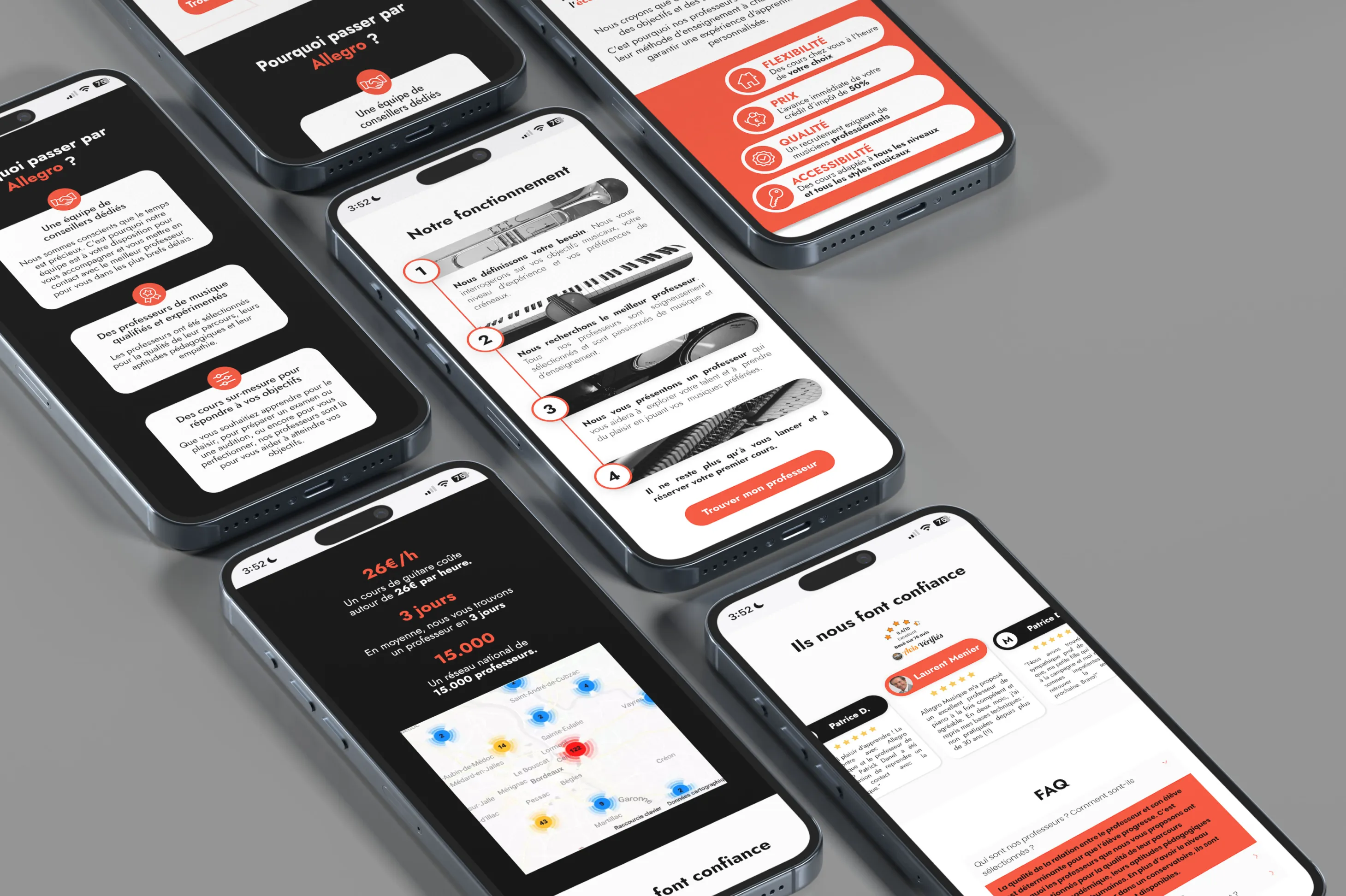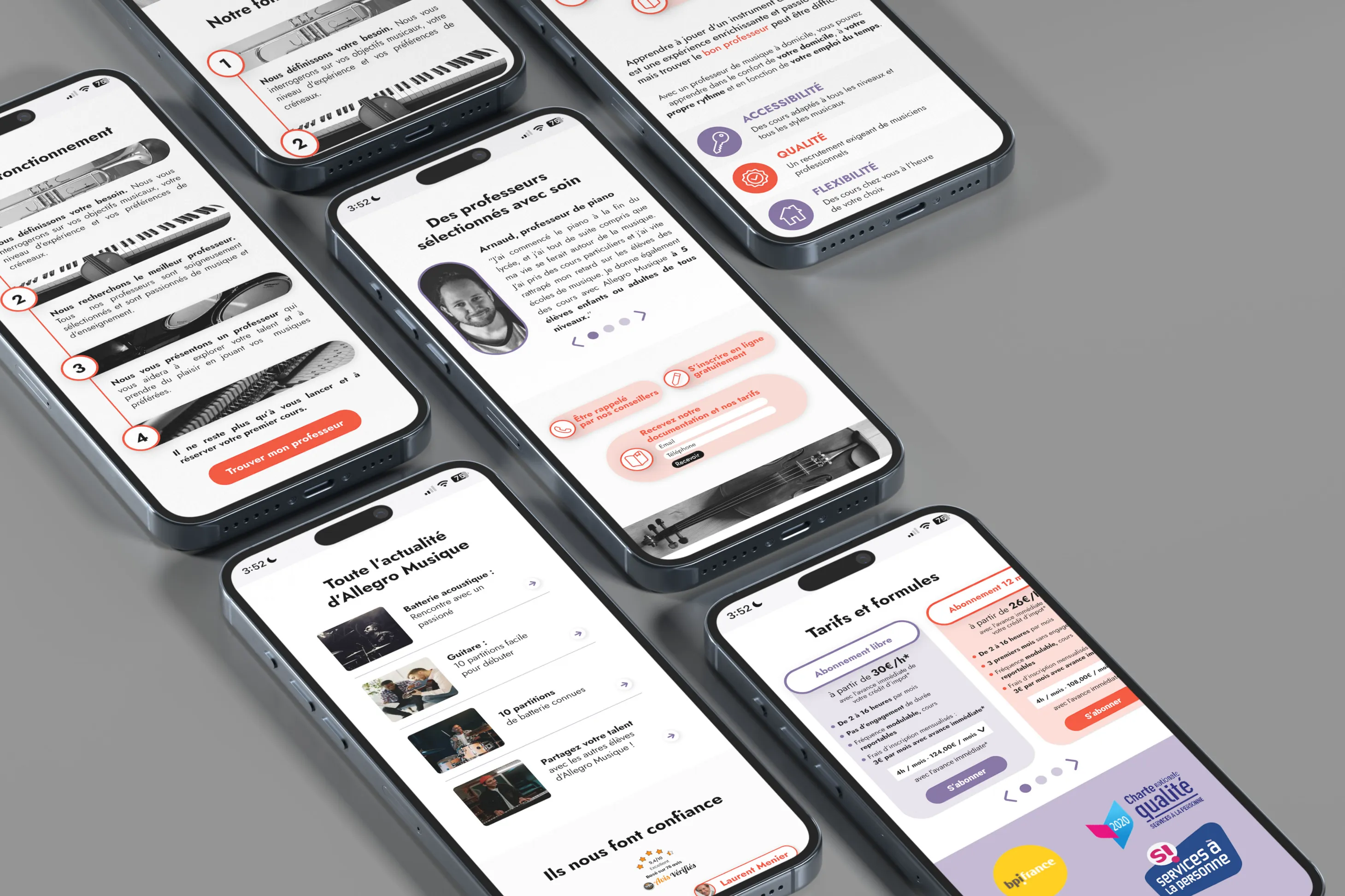 Allegro Musique est une entreprise proposant des services de cours de musique et de chant à domicile. Pour se faire connaître, et en lien avec des campagnes de social ads sur leurs différents réseaux sociaux, ils ont eu besoin de designs de landing pages innovantes, impactantes et engageantes.