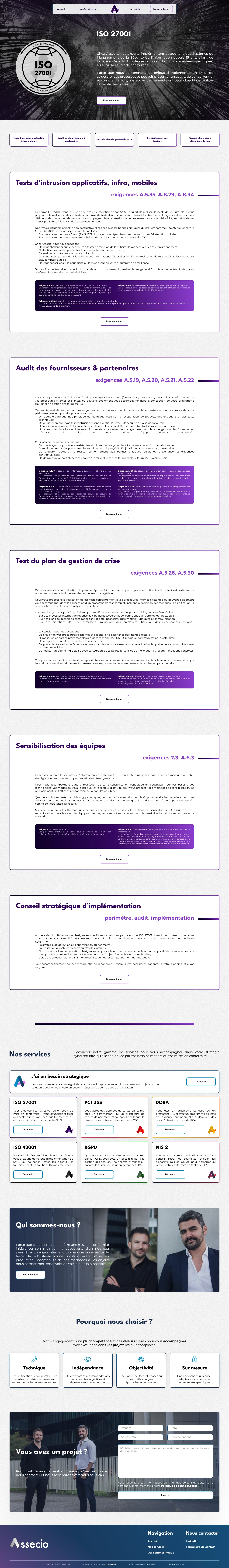 Création de l'UI/UX du site complet de l'entreprise Assecio, qui propose des accompagnements complets pour les entreprises souhaitant se conformer à des normes de cybersécurité, telles que les normes ISO, le RGPD ou encore le référentiel DORA.