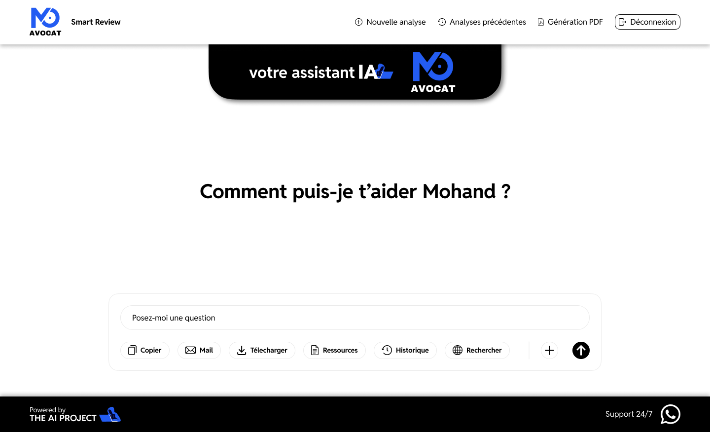 Le but de ce projet était d'avoir un UI clair, simple et professionnel. Pour ce qui est de l'UX, il était nécessaire qu'il soit optimisé de sorte à ce que chaque personne souhaitant utiliser l'Agent IA puisse trouver ce dont il a besoin rapidement.