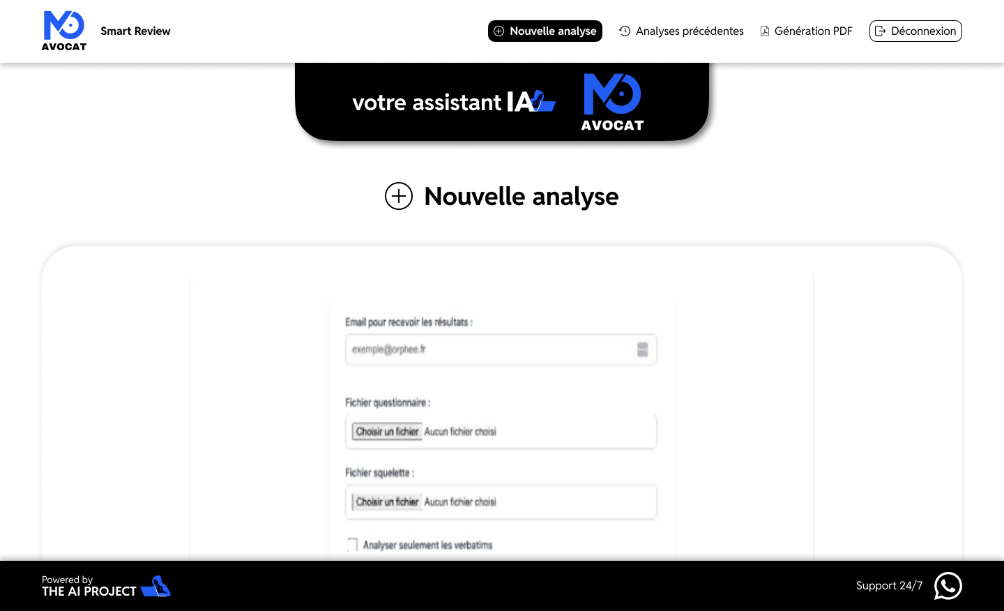 ONGLETS "NOUVELLE ANALYSE" ET GÉNÉRATION DE PDFs"